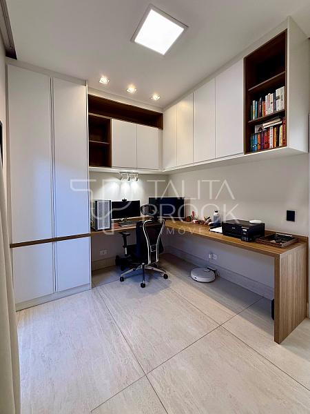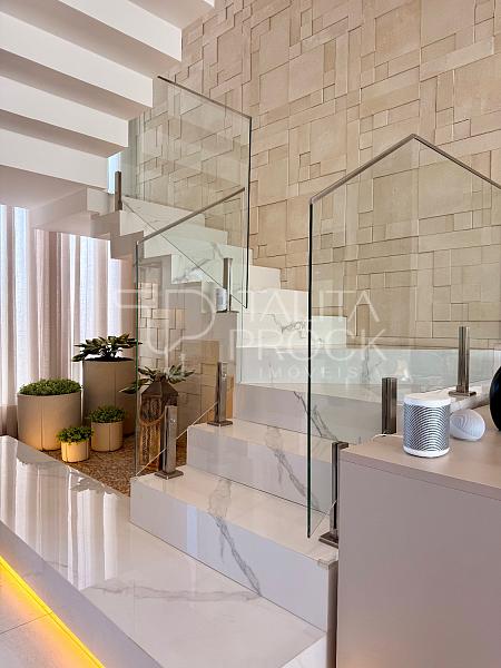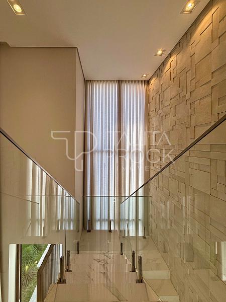 O imóvel conta ainda com automação nos ambientes sociais por Alexa, trazendo praticidade e modernidade ao dia a dia. No piso inferior, dispõe de escritório e banheiro completo, oferecendo versatilidade para home office ou acomodação de visitas.