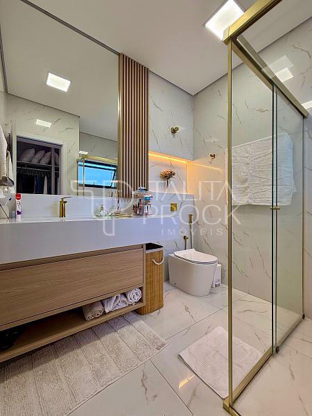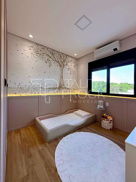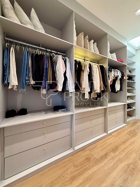 No pavimento superior, são 3 dormitórios, sendo 1 suíte com closet. O andar íntimo conta com persianas automatizadas e um roupeiro planejado, pensado para otimizar a organização e a rotina.
