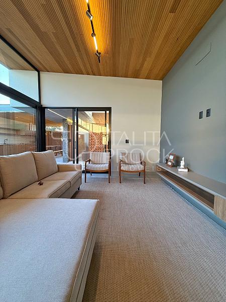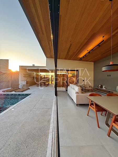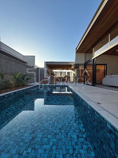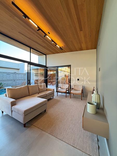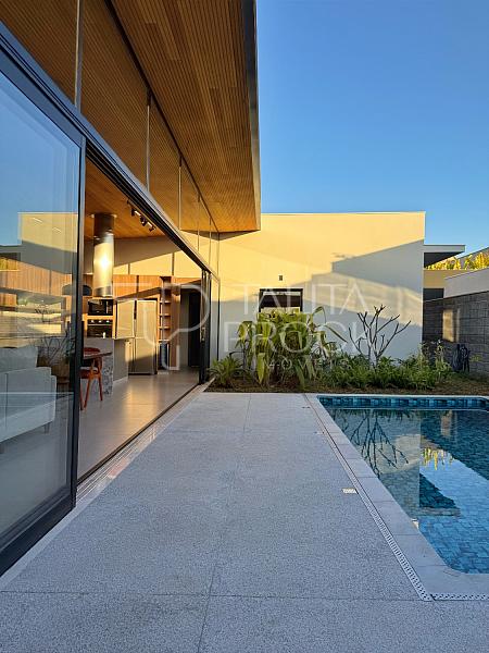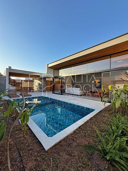 São 3 suítes (master com closet), living integrado à cozinha, escritório, lavabo, área gourmet completa, piscina com hidromassagem e um paisagismo exclusivo de Rulian Nociti, criando um verdadeiro oásis particular.