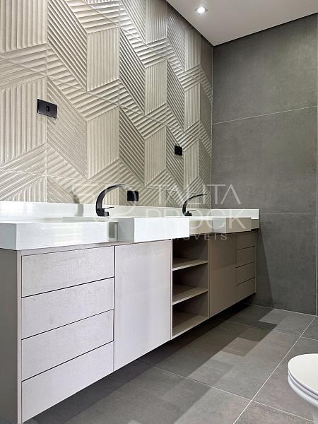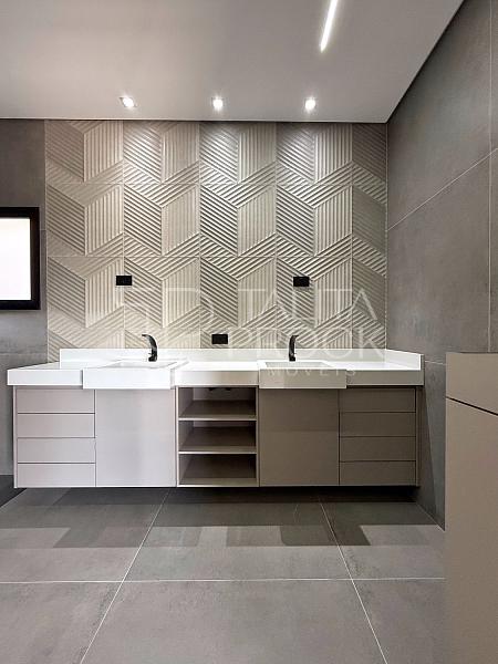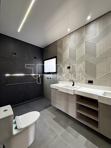 Os ambientes íntimos, estão localizados no piso superior. Conta com três suítes e a master com grande closet,e dois quartos com sacadas.