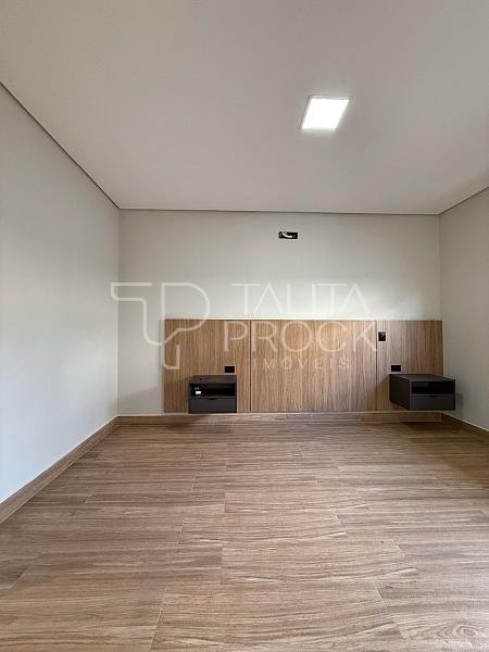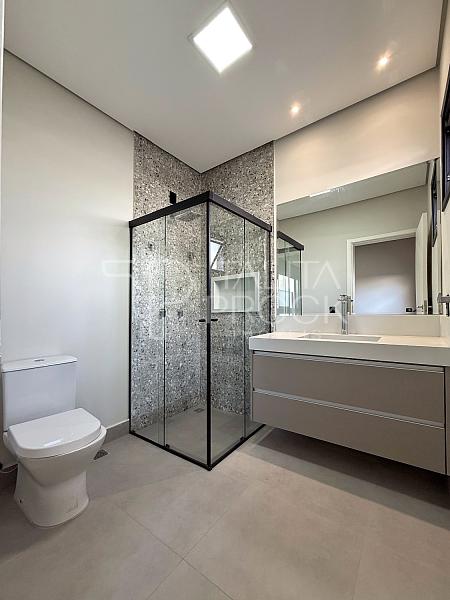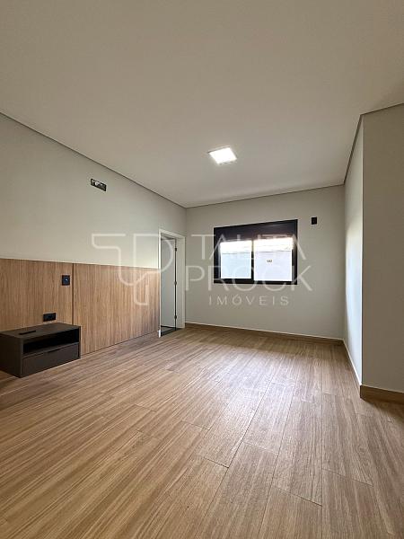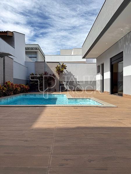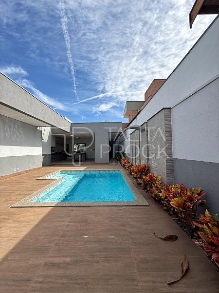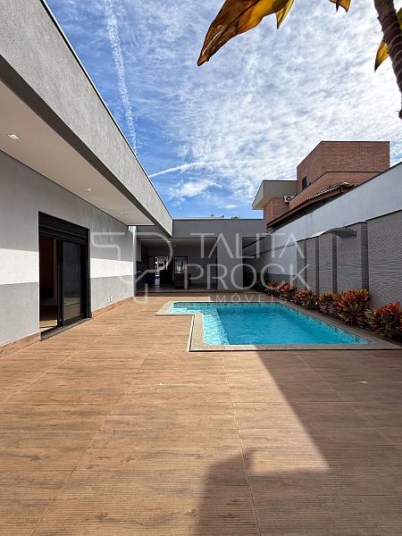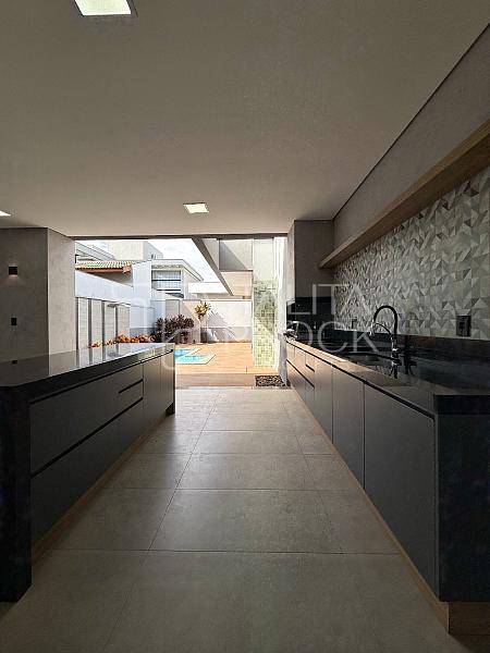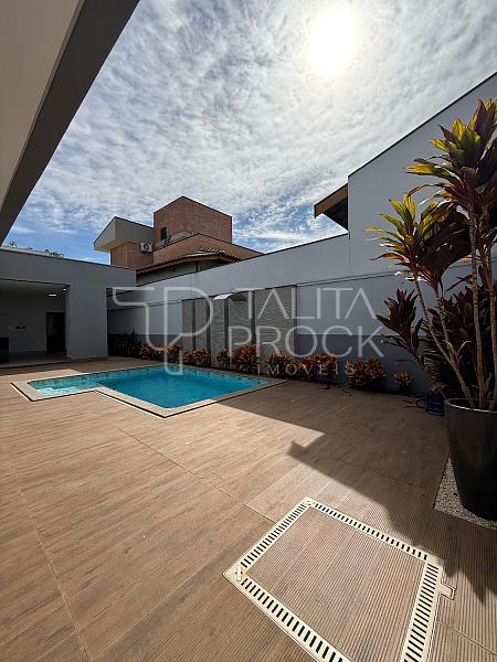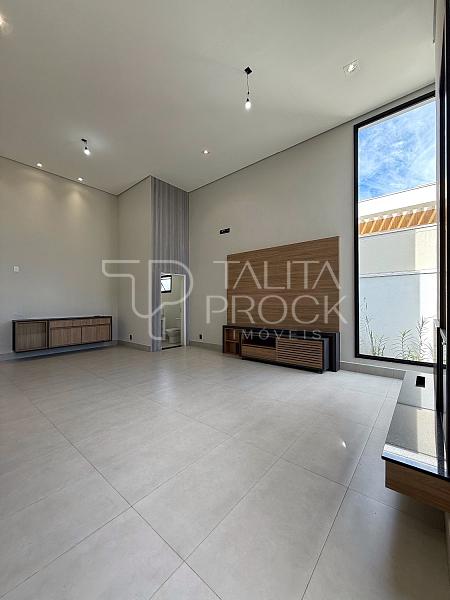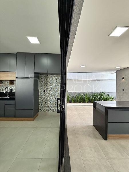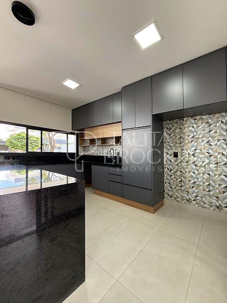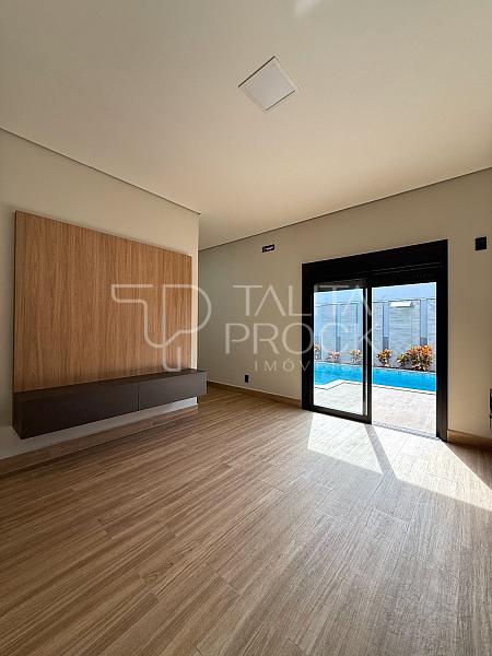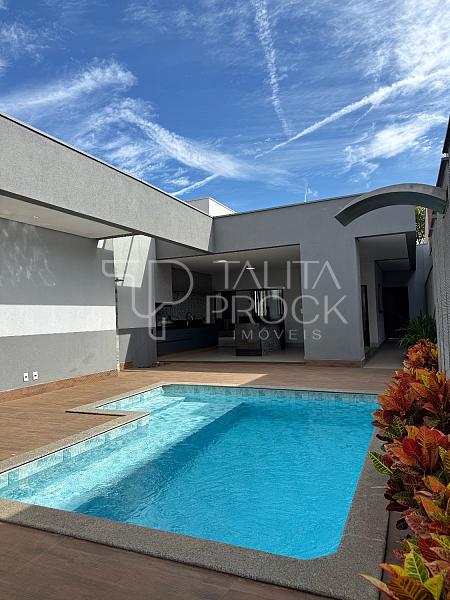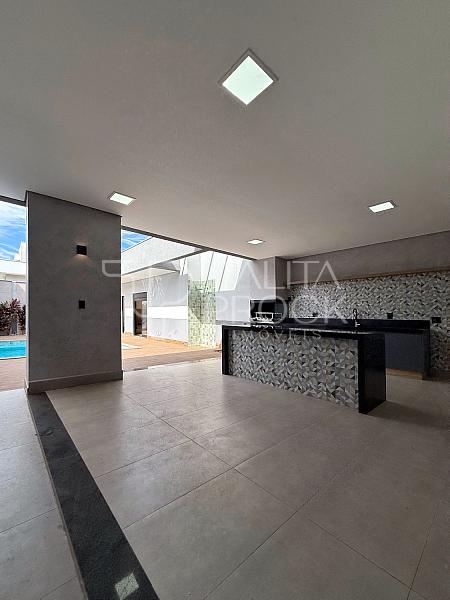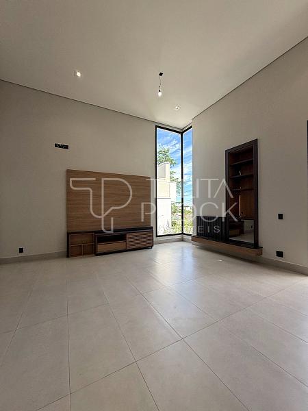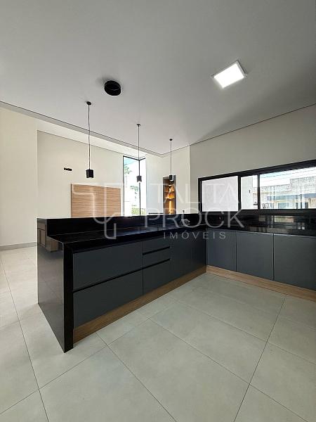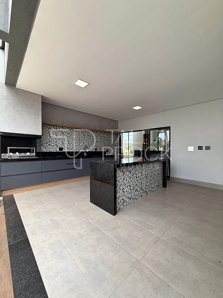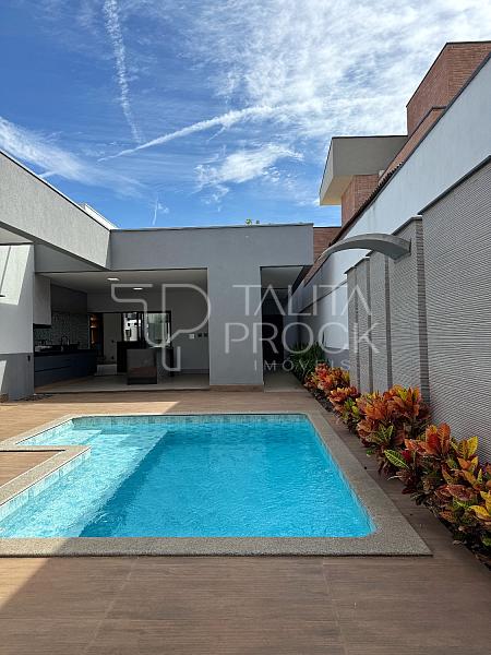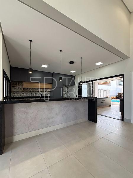 Casa térrea com pé direito alto, living com Salas de TV e jantar integrados á cozinha interna. A sala está com marcenaria e espaço para vinho. Cozinha completa em armários, ao lado do espaço gourmet. O Gourmet pode ser climatizado, possui extensa bancada e ilha para cooktop. O lazer oferece piscina já aquecida e banheiro completo. Lavanderia com espaço para despensa.