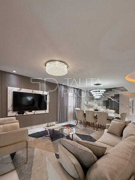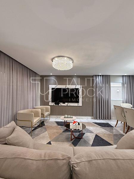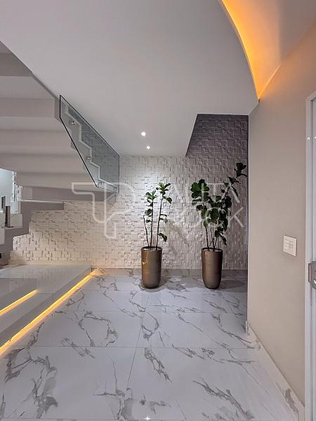Ao adentrar, linda decoração dos ambientes sociais sendo eles, living, sala de jantar e TV, ao lado lavabo e um comodo extra que pode ser utilizado como home office ou um quarto no piso inferior.