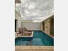 A parte externa, está muito bem preparada para acomodar mais convidados, e para você relaxar no final do dia, um espaço com TV, e amplo sofá com banheiro completo e piscina ao lado.