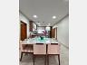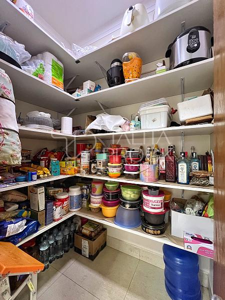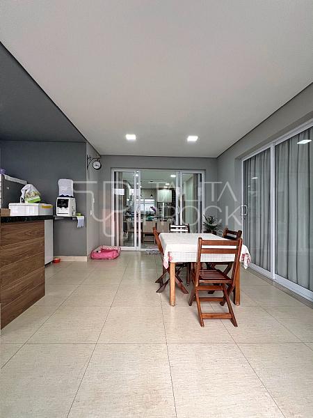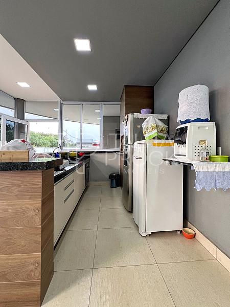 Sala de Tv isolada, com vista para jardim de inverno. A cozinha interna, está conectada com a sala de jantar. Ao lado lavanderia e despensa de alimentos.