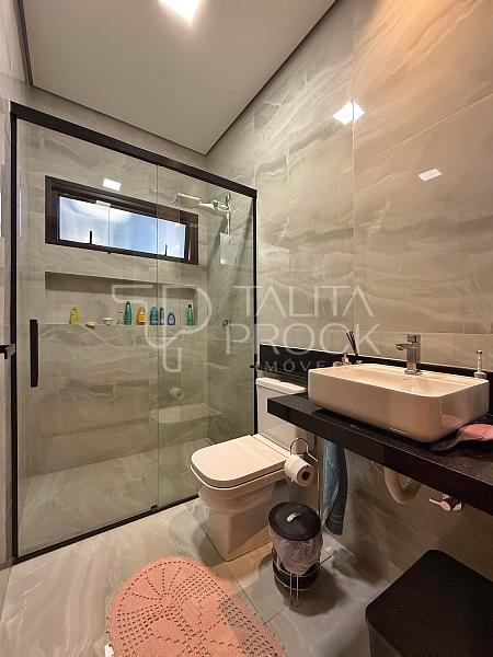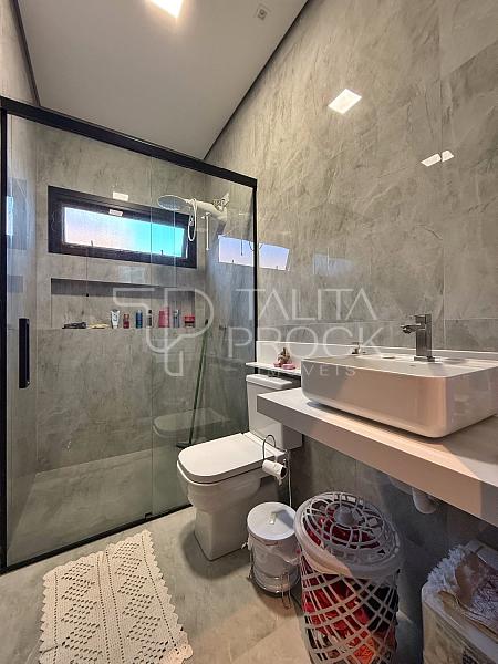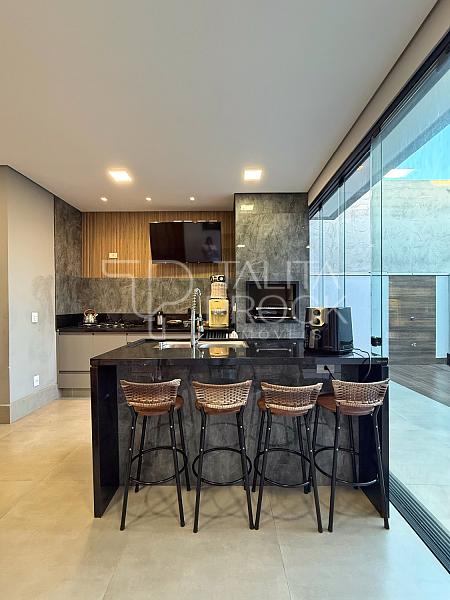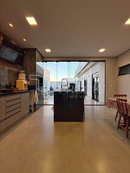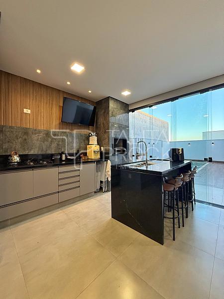 Casa térrea, com projeto moderno e funcional. Ao entrar, pé direito alto e ambientes conectados, sendo eles sala de TV, jantar e cozinha interna. A cozinha, e o Gourmet já estão com marcenaria.