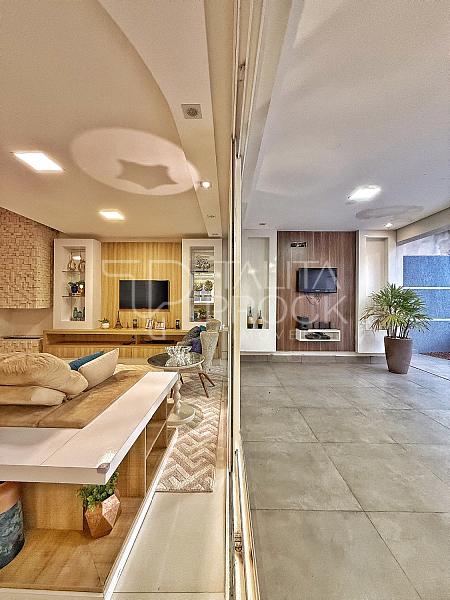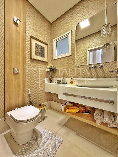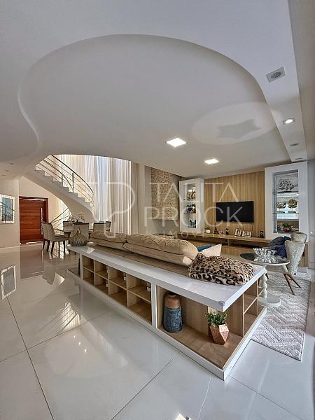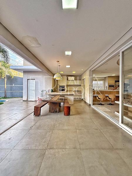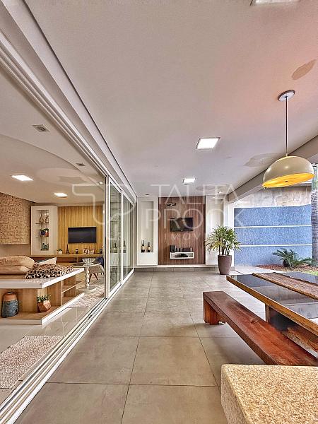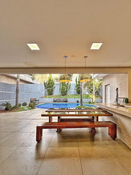 Ao entrar, uma bela vista de todos os ambientes sociais inclusive da piscina e do espaço externo. Os ambientes sociais, conta com ótima comunicação entre os espaços, sala de TV e jantar ao lado, com lareira e lavabo social. Cozinha interna, com despensa e lavanderia. O espaço gourmet, conta com churrasqueira á carvão, pia e delicioso local para confraternizar, além de banheiro completo.