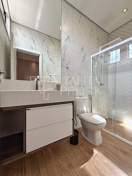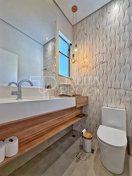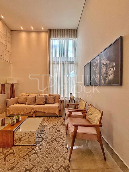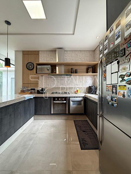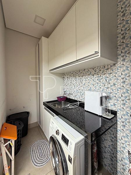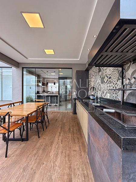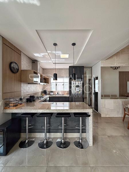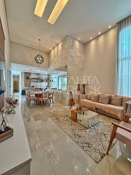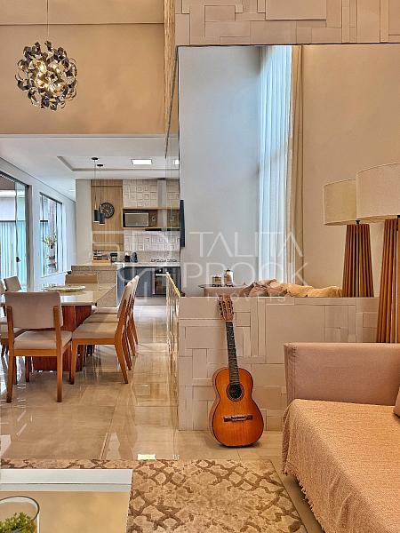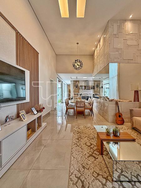 Ao adentrar, pé direito alto e ambientes sociais conectados, sendo eles sala de TV, jantar e cozinha interna. Esse espaço conta com lavabo social, e lavanderia ao lado da cozinha.