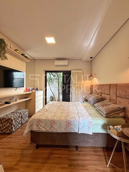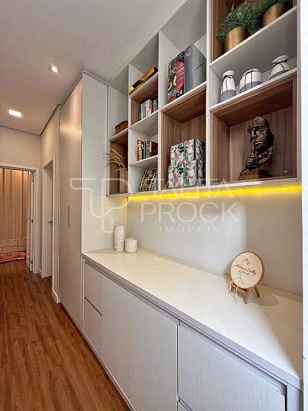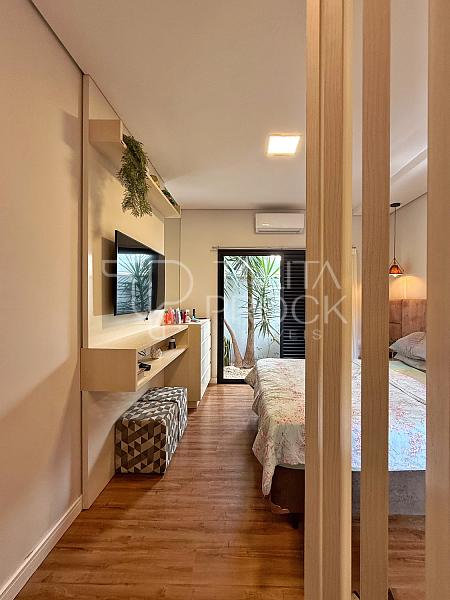 Os ambientes íntimos, possui três ótimas suítes e mais um quarto extra, total de 4 dormitórios. Além de espaço de roupeiro com armários e bancada. A master, tem closet.