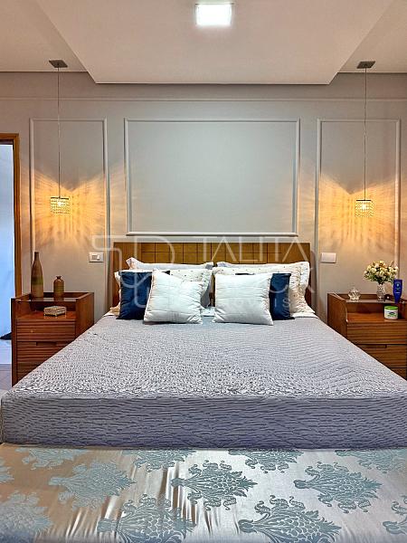 Os ambientes íntimos, contam com duas grandes suítes, sendo a master com sacada e closet. E mais um cômodo extra que pode ser utilizado como o terceiro dormitório.