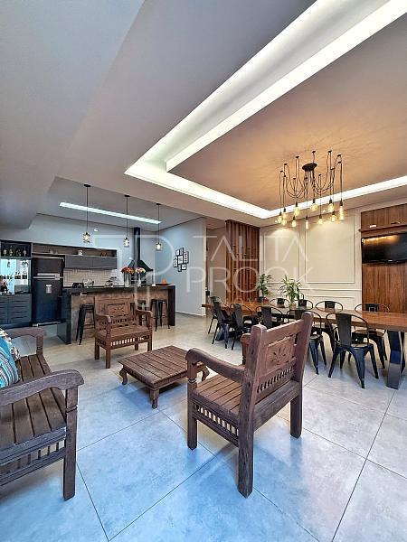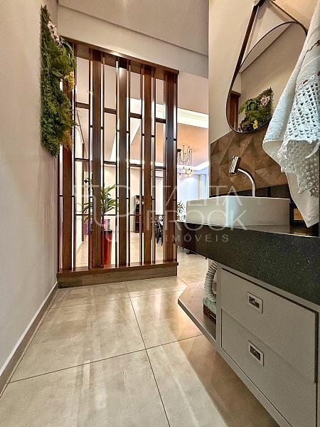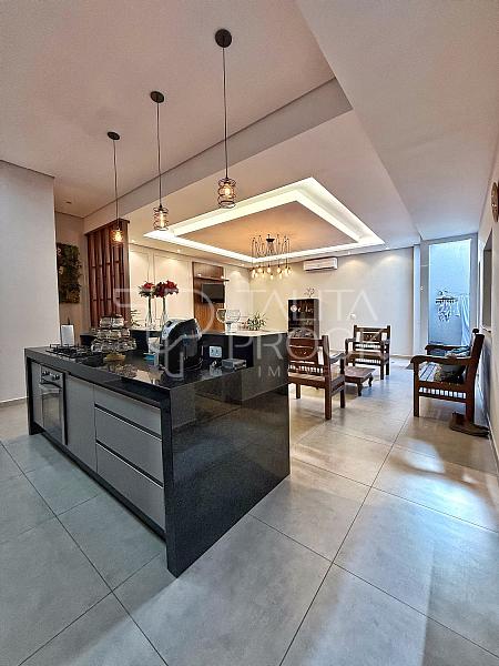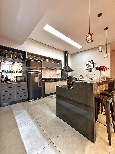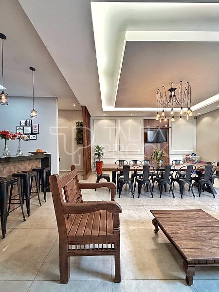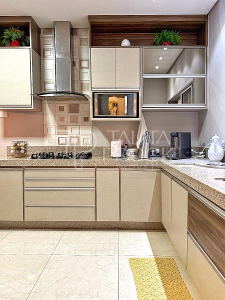 Ao adentrar, bom espaço de sala de TV, com banheiro social e jardim de inverno, a cozinha interna, está muito bem montada, com movéis e eletrodomésticos de ótimas marcas.