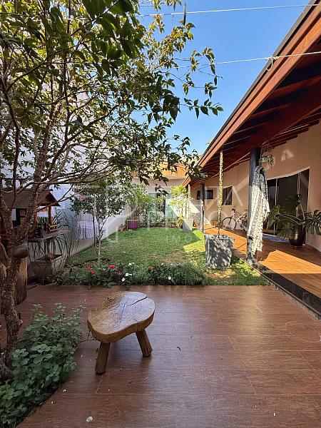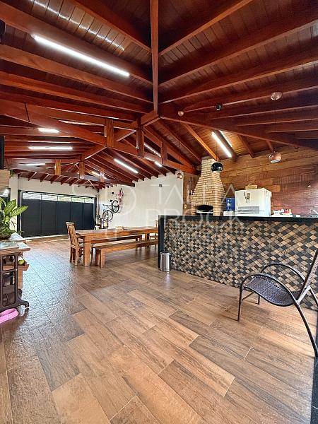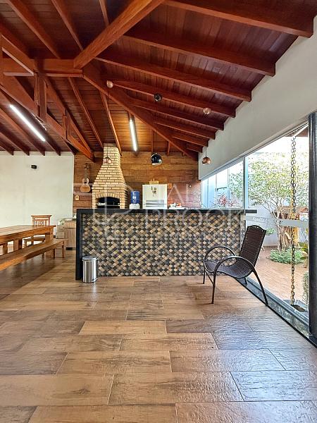 Uma casa rodeada de natureza. A proposta desse imóvel, encanta pelos acabamentos em madeira e o espaço gourmet delicioso que ela possui. Ela conta com três dormitórios sendo uma suíte com closet, sala de Tv, jantar e cozinha integrados. Conta também com home office e banheiro externo. A varanda com madeira aparente, conectada com o verde externo da casa encanta e proporciona paz nos dias agitados, além do paisagismo, árvores frutíferas estão distribuídas no quintal. Ela está com marcenaria, dormitórios climatizados e aquecimeto solar.