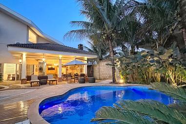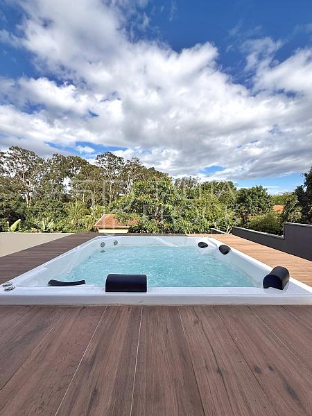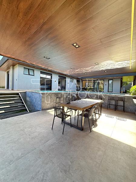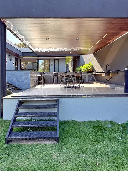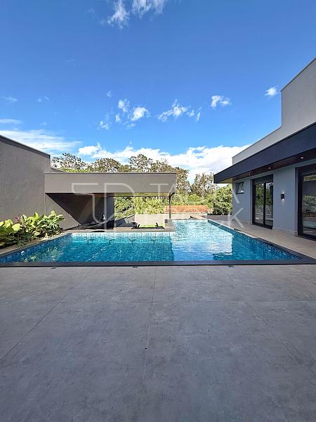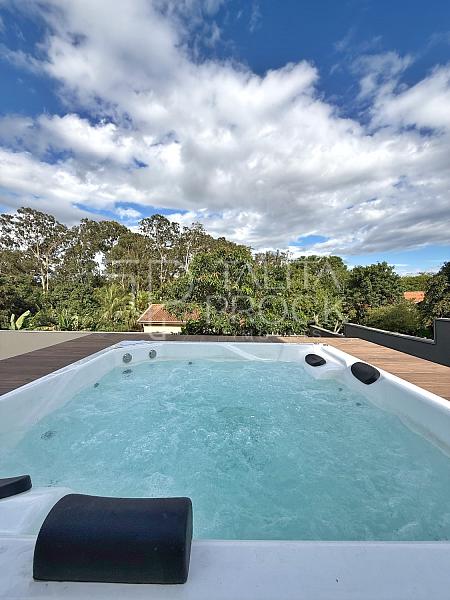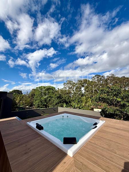 A casa possui construção recente e foi projetada com ambientes amplos e confortáveis. São 3 suítes, incluindo uma suíte master que oferece o charme adicional de um spa privativo, perfeito para relaxar ao final da tarde enquanto aprecia a natureza exuberante que contorna toda a propriedade.