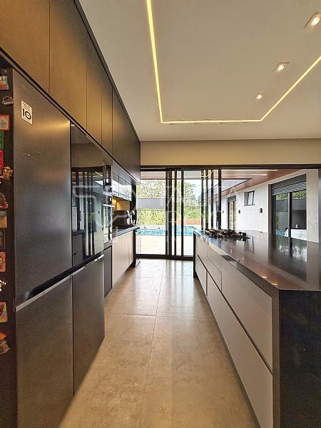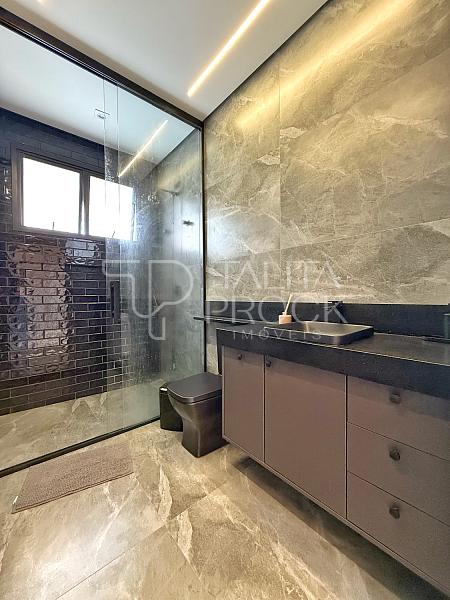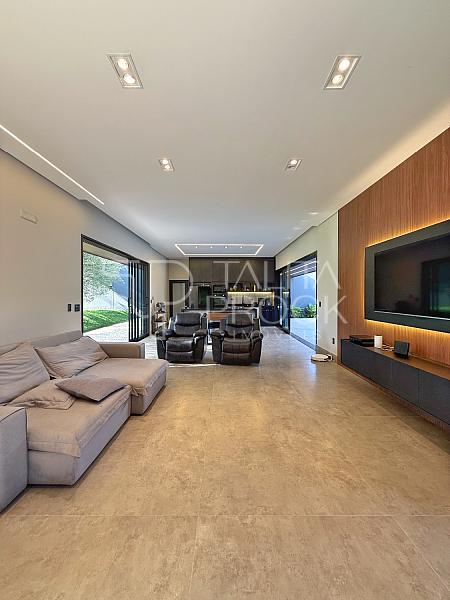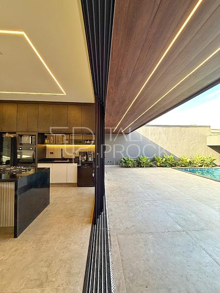 • Portas e esquadrias em alumínio linha Gold, com vidro e persianas automatizadas